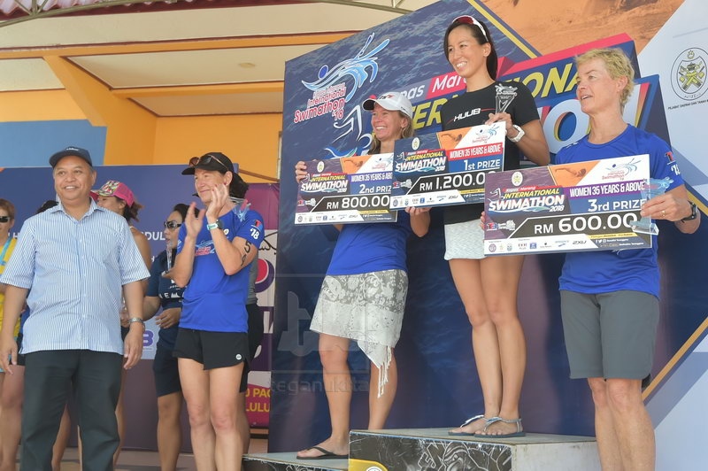 Dalam pada itu, remaja dari Singapura, Ervina Lim,16, menggunguli perenang wanita dengan catatan 1:34:20.