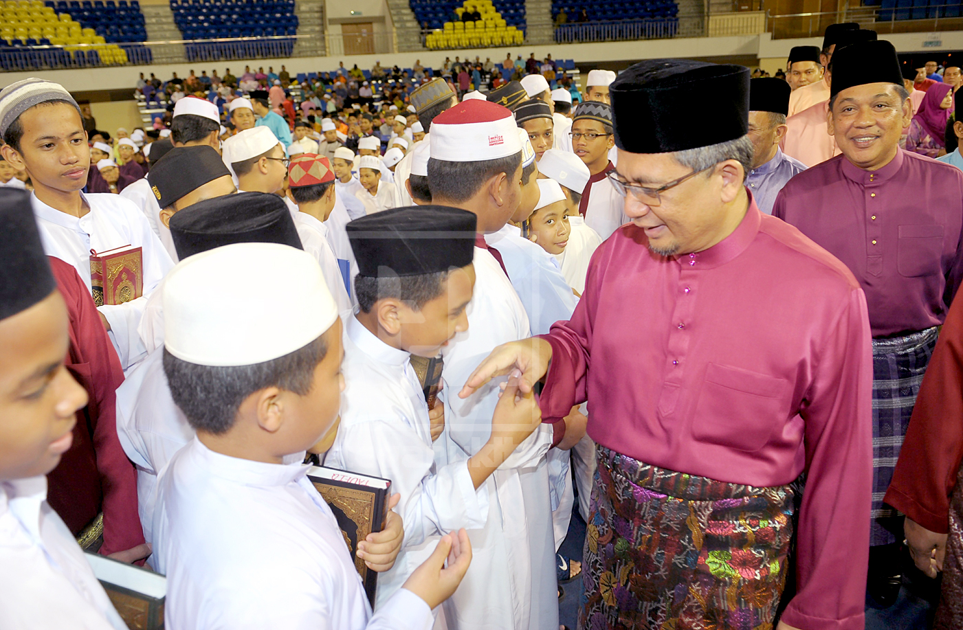 | Ahmad Razif bermesra dengan pelajar sebaik tiba di MajlisMajlis Menghafaz al-Quran peringkat Terengganu, di Stadium Tertutup, Gong Badak, Kuala Nerus. Foto oleh Zulkifli CW Putra |