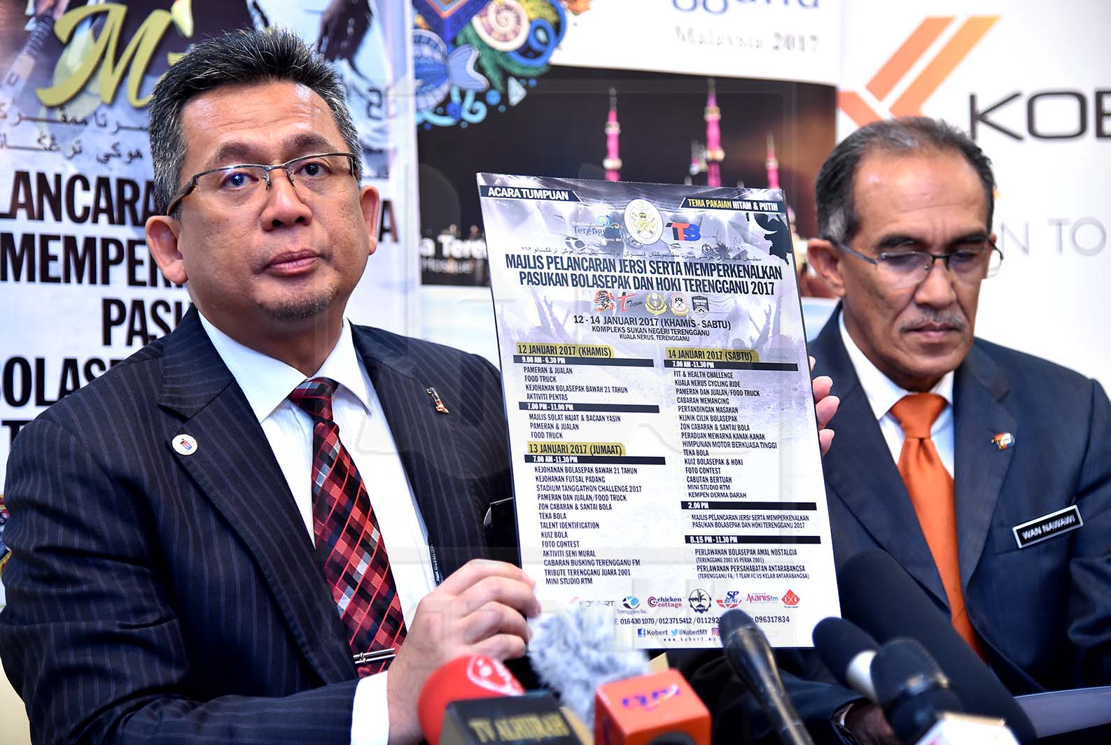 “Acara kemuncak bagi program ini adalah pada 14 Januari bermula jam 2.30 petang iaitu Majlis Pelancaran Jersi Serta Memperkenalkan Pasukan Bola Sepak dan Hoki Terengganu 2017 di hadapan Stadium Tertutup Kompleks Sukan Negeri Terengganu,” katanya.