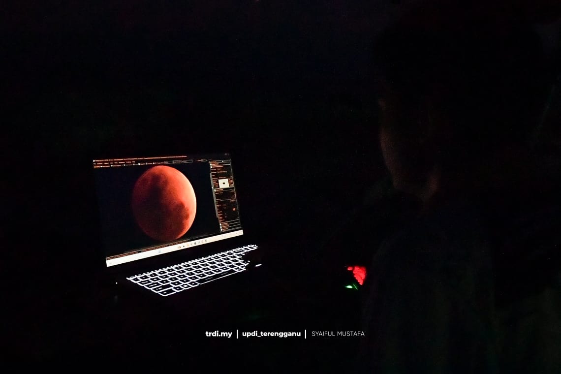 "Ini merupakan pertama kali, orang ramai diberi peluang untuk melihat gerhana bulan penuh ini melalui demonstrasi cerapan bulan oleh Jawatankuasa Falak Negeri Terengganu selain itu ada tayangan skrin secara langsung ditayangkan dalam masjid.