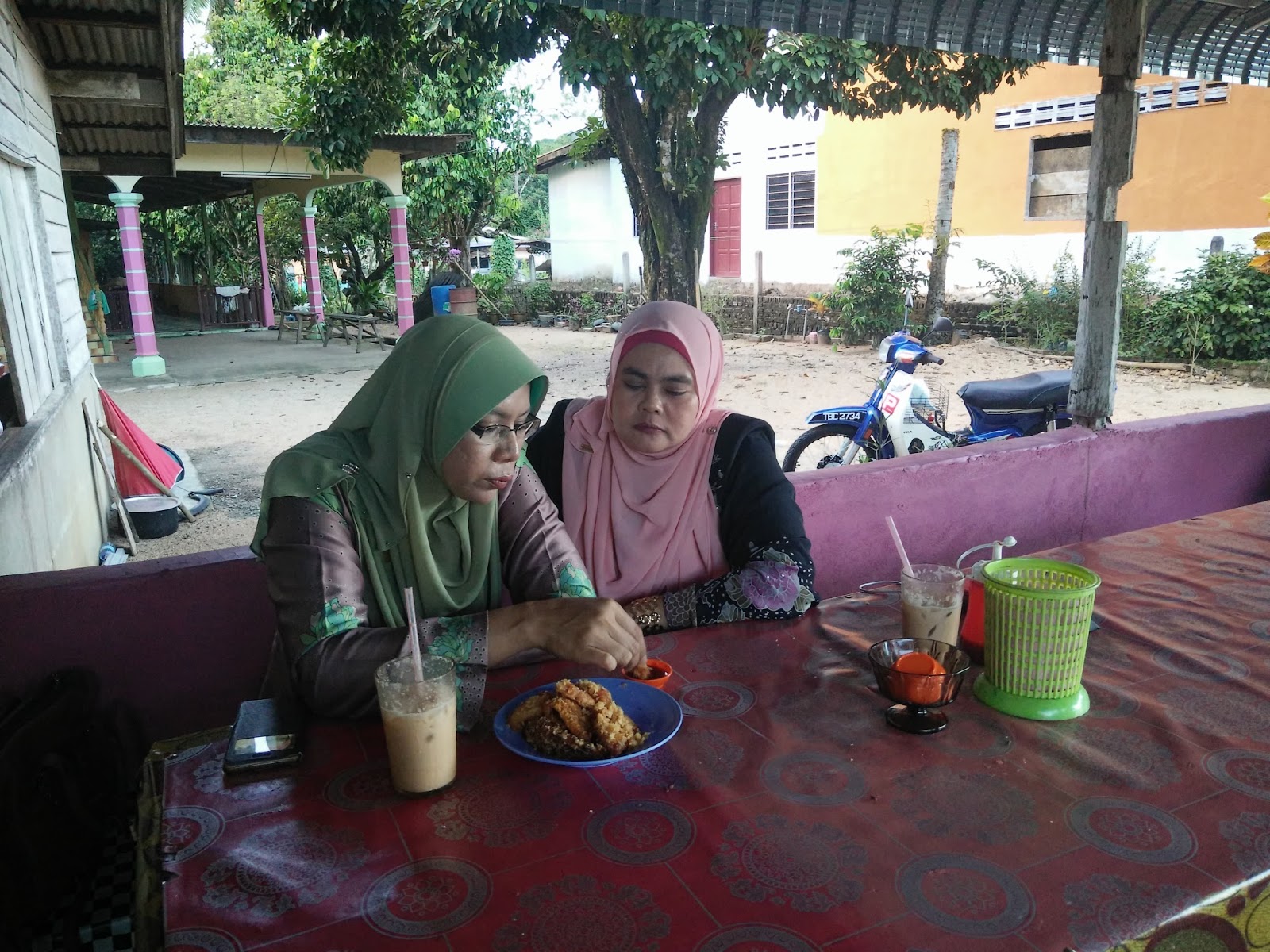 | Pok Mat membantu isterinya Mok Ngoh mengoreng pisang |