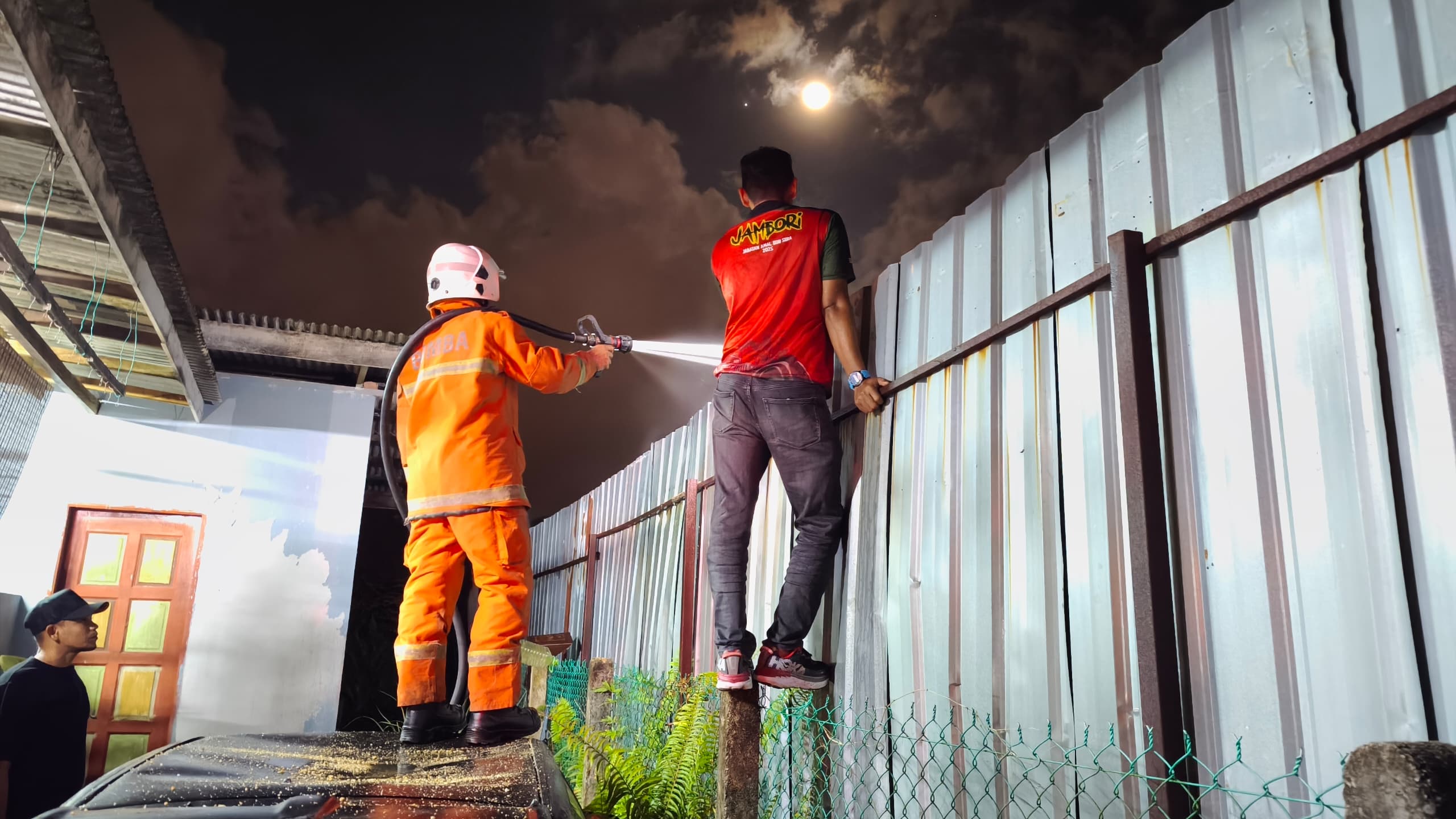 Kebakaran yang berlaku sekitar jam 10.30 malam itu menyebabkan suasana bertukar panik dalam sekelip mata, namun kedua-dua mangsa berjaya menyelamatkan diri dengan bantuan daripada orang kampung.