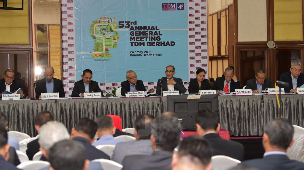 “Dengan perkembangan positif ini, TDM akan membayar dividen sebanyak 0.5 sen untuk setiap saham biasa dengan jumlah anggaran RM8.3 juta.Bayaran ini selari dengan polisi dividen TDM di mana jumlah dividen adalah bersamaan dengan 36 peratus dari keuntungan selepas cukai dan kepentingan minoriti (PATAMI)," katanya kepada pemberita di sidang media selepas mempengerusikan Mesyuarat Agung Tahunan TDM Berhad kali ke-53 (AGM), di Hotel Primula Beach, hari ini.Menurut Wan Nawawi, pendapatan bahagian perladangan Kumpulan TDM meningkat sebanyak 7.9 peratus kepada RM265.3 untuk FY2017 daripada RM245.9 juta yang dicatatkan pada tahun sebelumnya.