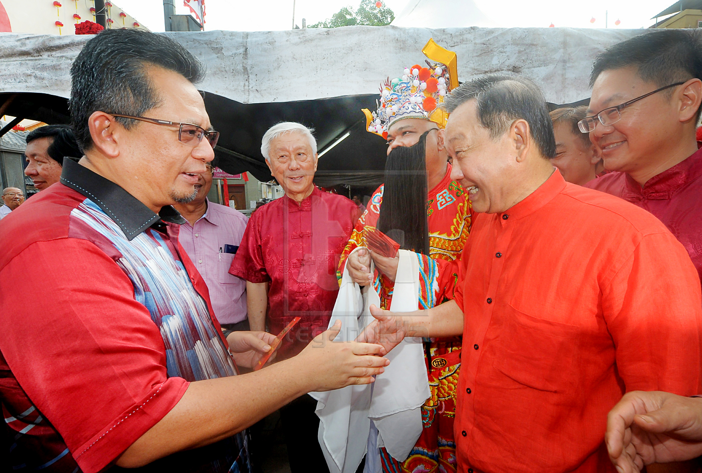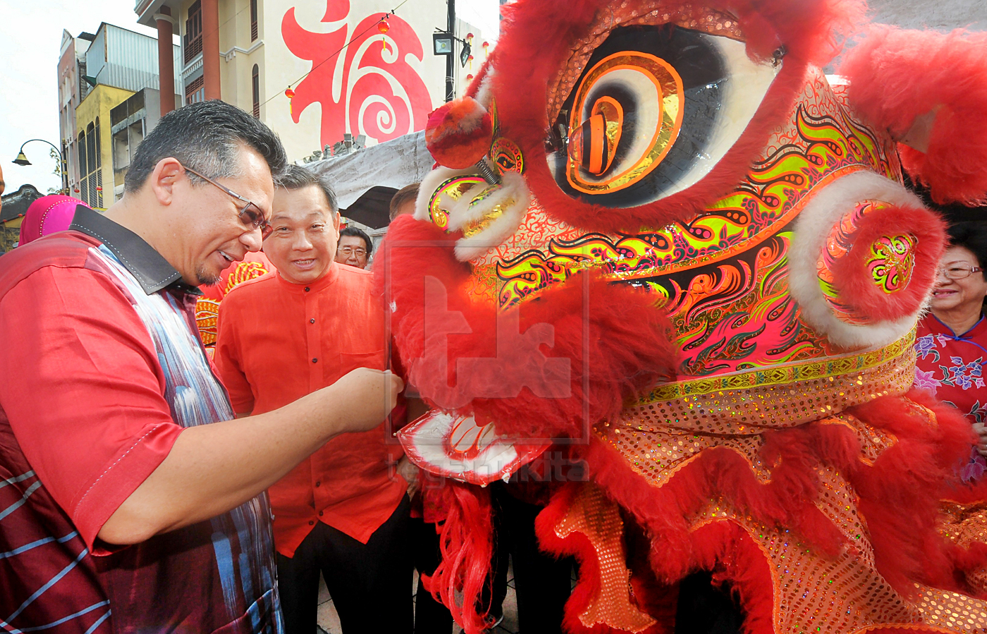 | Ahmad Razif bersama beberapa tetamu mengaul Yee Sang pada Majlis Rumah Terbuka Tahun Baru Cina DUN Bandar, di Kampung Cina, Kuala Terengganu, hari ini. Foto oleh Zulkifli Putra |