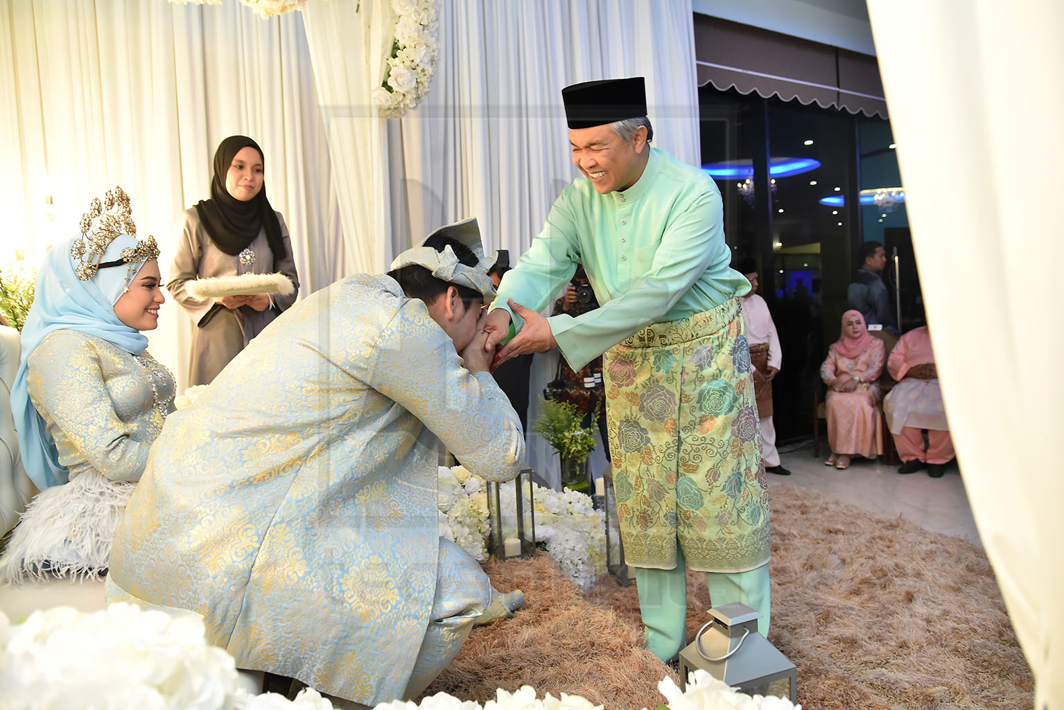 Sebelum berangkat pulang, Zahid sempat meraikan pasangan dua sejoli tersebut dengan memberi restu kepada kedua mempelai di majlis itu.
